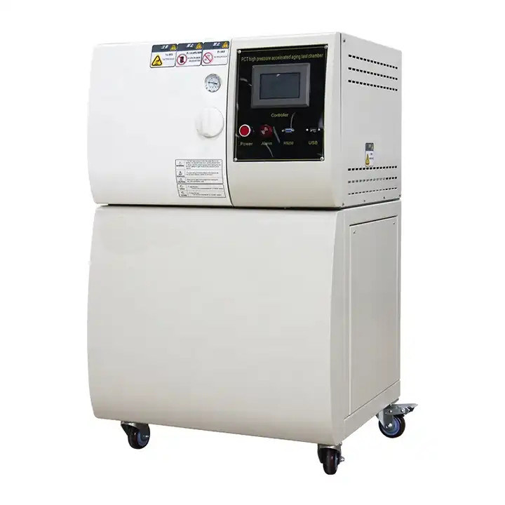 La cámara del PCT del control de la temperatura, la cámara de alta presión de la prueba/olla de presión para la prueba de envejecimiento del laboratorio se solicita extensamente la prueba de la propiedad de lacre para el paquete de múltiples capas de la placa de circuito, del lacre de IC, la pantalla LCD, el LED, el semiconductor, los materiales magnéticos, NdFeB, las tierras raras y el hierro del imán, en los cuales la resistencia a la presión y la tirantez del aire para los productos antedichos se pueden probar hacia fuera.
